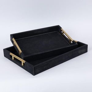 Комплект/2 подноса 560 в естествен цвят от MDF-метал - 39x32x8 и 35x28x7.5 см