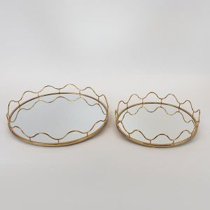 КОМПЛЕКТ/2 МЕТАЛНИ ПОДНОСА 3085 В АНТИЧЕН БРОНЗОВ ЦВЯТ - 47X31X7,5CM