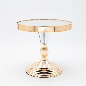 ДЕКОРАТИВНА ПОСТАВКА ЗА ТОРТА 3 ЕТАЖА ОТ ЧЕКЛО СЪС ЗЛАТНИ ДЕТАЙЛИ 20X51СМ