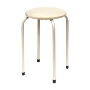 КРЪГЛА ТАБУРЕТКА С КРЕМАВА ВЪЗГЛАВНИЦА НА ДЪРВЕНА ОСНОВА 41X41X44СМ