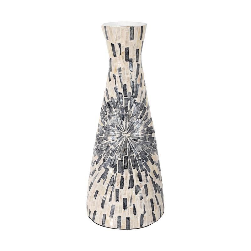 ВАЗА ЗА МАСА БАМБУК-ШЕЛ FL03 СИВО-БЯЛ ЦВЯТ 18x43cm