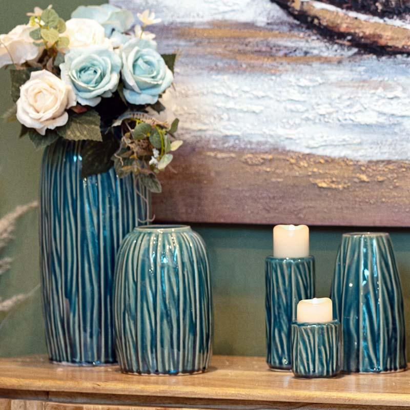Керамичен декоративен свещник в зелен цвят с размери 7,7x7,7x8,5см