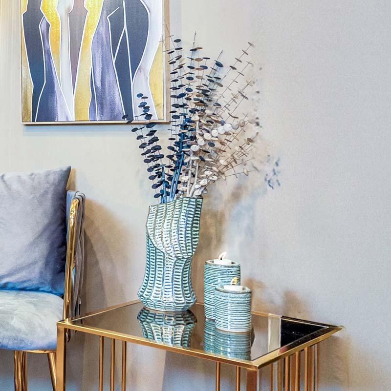 Керамична декоративна ваза в цвят сиел с размери 14х13,5х28,3см