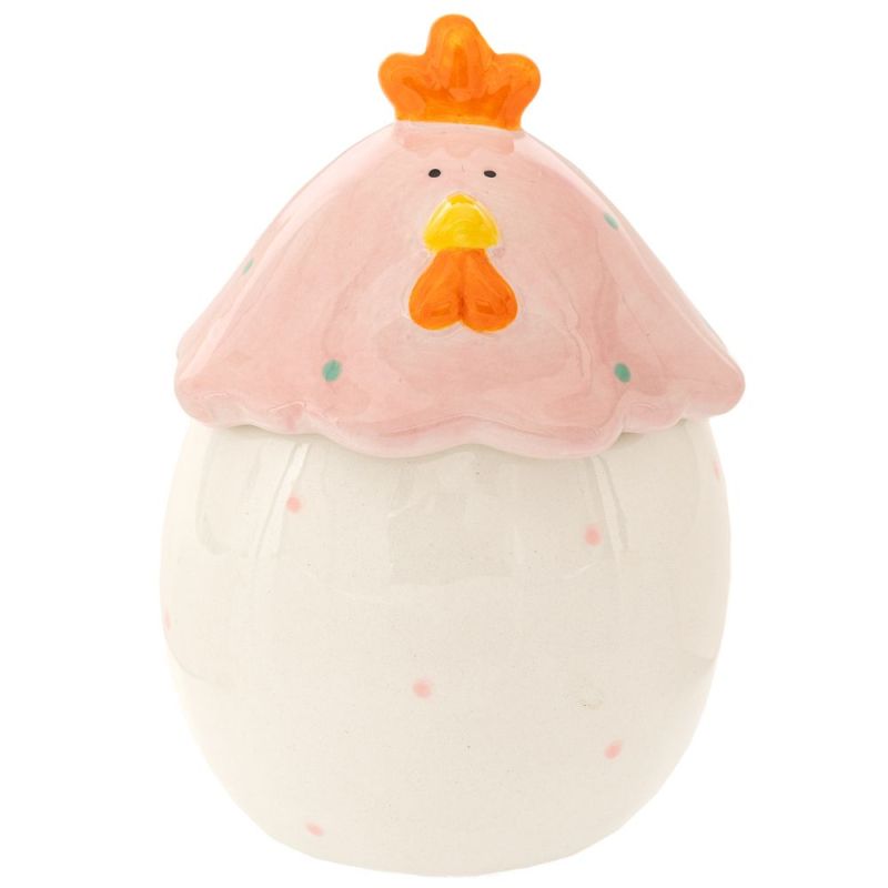 РОЗОВ КЕРАМИЧЕН БУРКАН ЗА БОНБОНИ КОКОШКА 9Х9Х13СМ