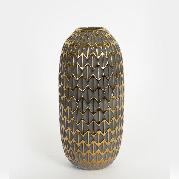 ВАЗА, КЕРАМИКА, ЧЕРНО И ЗЛАТНО, 13,8x13,8x28,5 cm