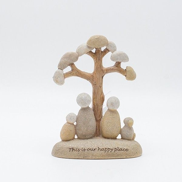 ДЕКОРАТИВНА АБСТРАКТНА СКУЛПТУРА, СЕМЕЙНИ ФИГУРИ ОКОЛО ДЪРВО "ТОВА Е НАШЕТО ЩАСТЛИВО МЯСТО", ПОЛИРЕЗИН, СИВ, 11x4,5x14,5 см