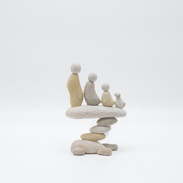ДЕКОРАТИВНА АБСТРАКТНА СКУЛПТУРА, СЕМЕЙСТВО ВЪРХУ БАЛАНСИРАНИ КАМЪНИ, ПОЛИРЕЗИН, СИВ, 11x4,5x14,5 см