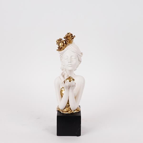 СКУЛПТУРА, ЖЕНА С ЦВЕТЯ, БЯЛО И ЗЛАТНО, 10x14x32 см