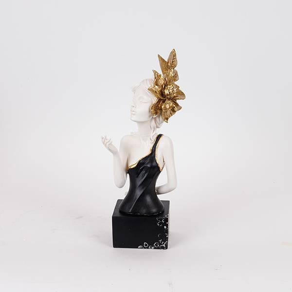 СКУЛПТУРА, ЖЕНА С ЦВЕТЯ, БЯЛО-ЗЛАТНО-ЧЕРНО, 14x13x35см