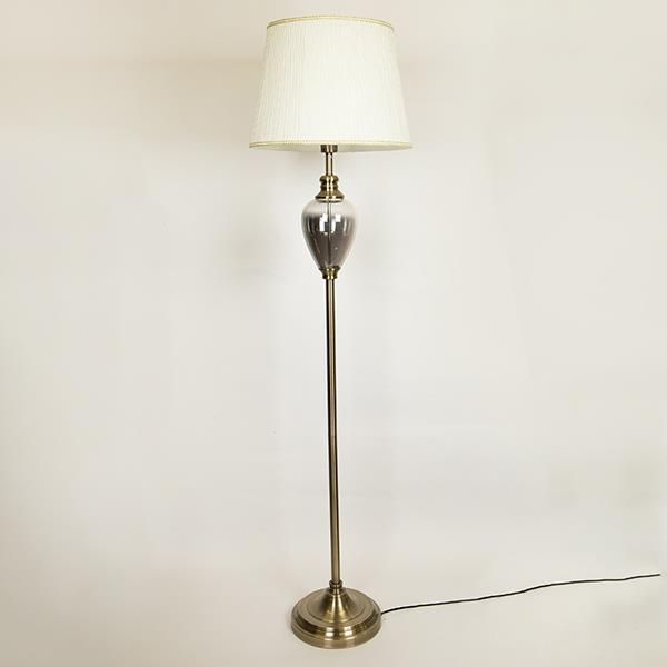 ЛАМПИОН С БЯЛ КОПРИНЕН АБАЖУР МЕТАЛ - СТЪКЛО ЗЛАТЕН 43.5X166СМ