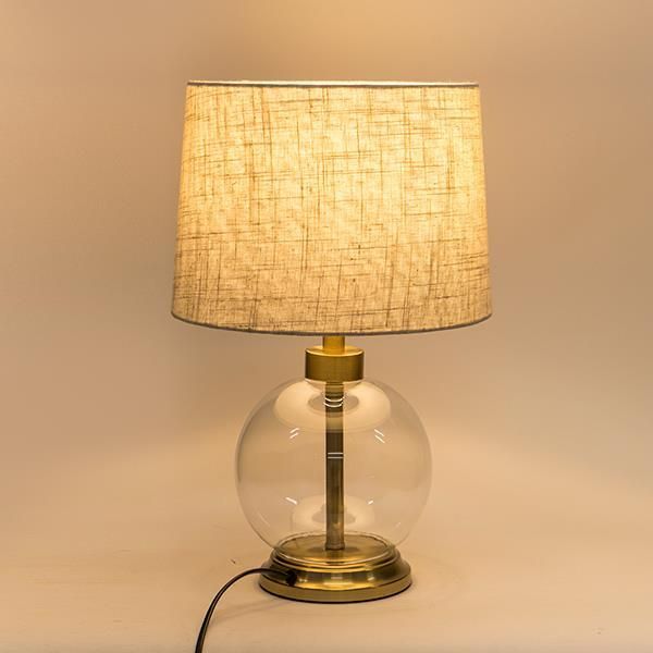 НАСТОЛНА ЛАМПА С БЕЖОВ ЛЕНЕН АБАЖУР МЕТАЛ - СТЪКЛО ЗЛАТИСТО 28X45СМ