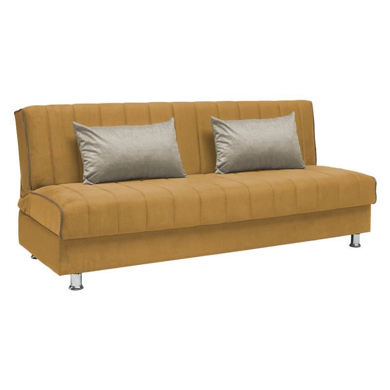 РАЗТЕГАТЕЛЕН ДИВАН NEW LEON ГОРЧИЦА С БЕЖОВИ ВЪЗГЛАВНИЦИ 190x85x83см