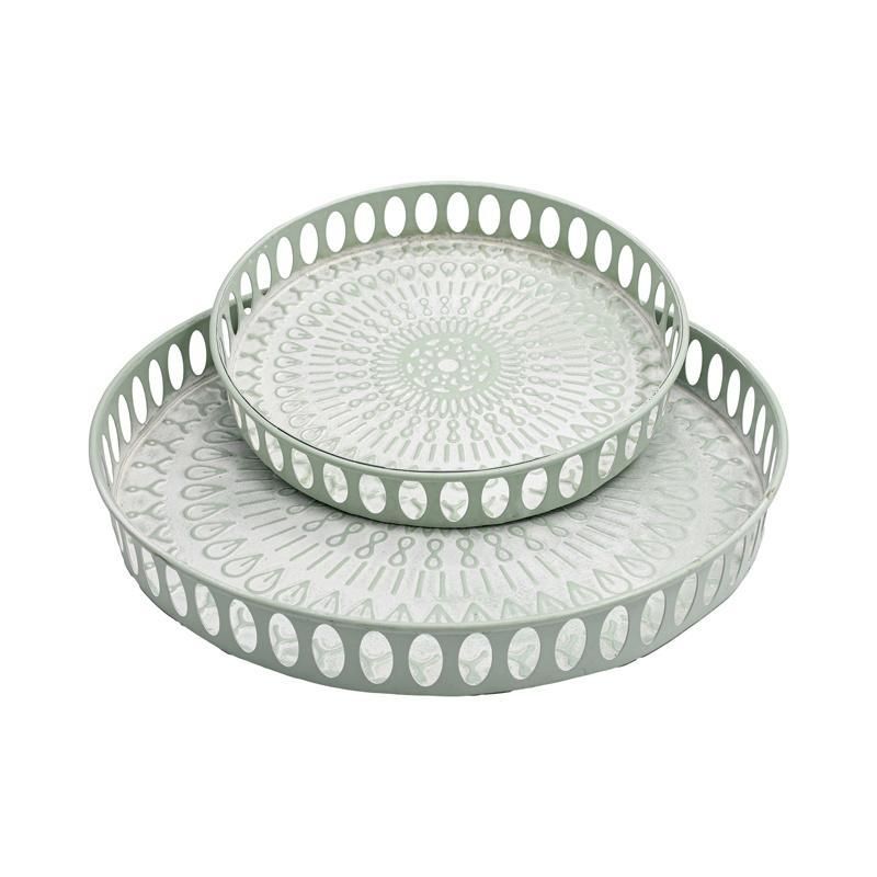 КОМПЛЕКТ ОТ 2 МЕТАЛНИ ПОДНОСА FL1510 МЕНТОВО-БЯЛ ЦВЯТ 38X5СМ