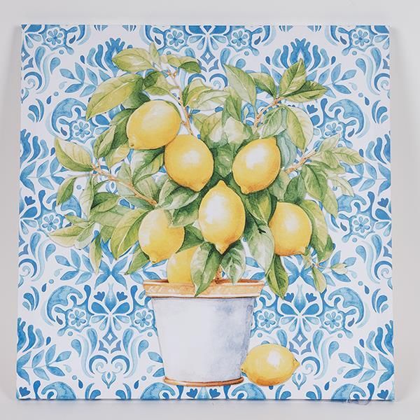 КАРТИНА ПЛАТНО С ЛИМОНИ ЖЪЛТО - ЗЕЛЕНО - СВЕТЛО СИНЬО 50X50СМ