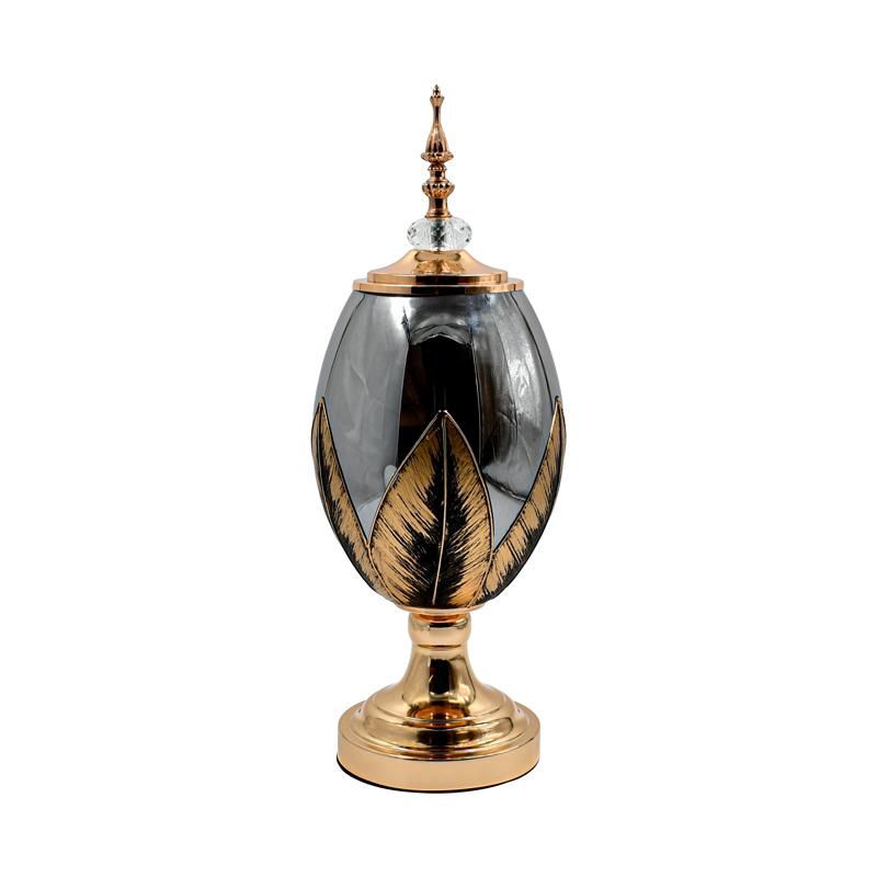 СТЪКЛЕНА ВАЗА С КАПАК FL3087 ЧЕРНО-ЗЛАТИСТ ЦВЯТ 17X47СМ