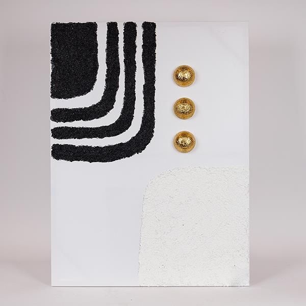 КАРТИНА ПЛАТНО С РЕЛЕФЕН МОДЕЛ БЯЛО - ЧЕРНО - ЗЛАТНО 60X7X80СМ