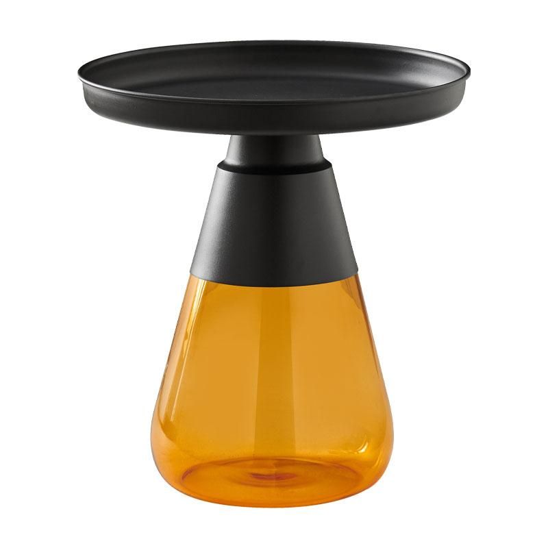 КРЪГЛА ХОЛНА МАСА FL828 МЕТАЛ С КЕХЛИБАРЕН ЦВЯТ НА СТЪКЛОТО 50X52СМ