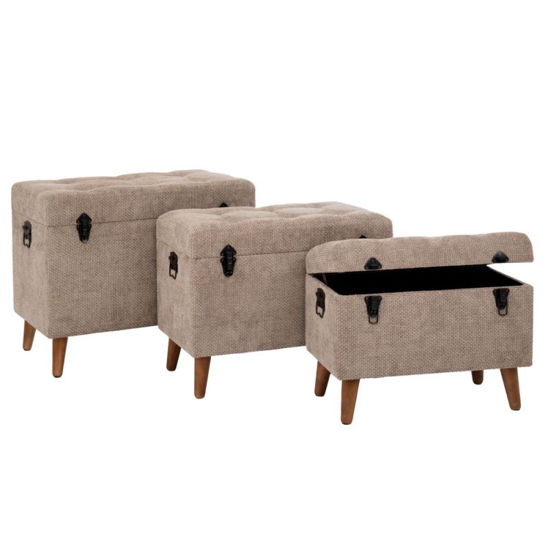 КОМПЛЕКТ 3 ТАБУРЕТКИ НА ДЪРВЕНИ КРАКА И МЯСТО ЗА СЪХРАНЕНИЕ D70X41X56CM 63X35X45CM 55X30X40CM