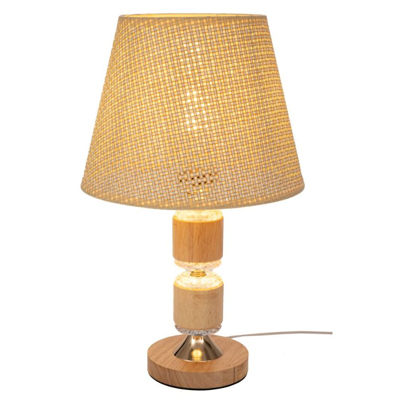 ЛАМПА ОТ ЕСТЕСТВЕНО ДЪРВО С ПЛЕТЕНА ШАПКА С ДОПЪЛНИТЕЛНО ОСВЕТЛЕНИЕ В ОСНОВАТА 40 СМ