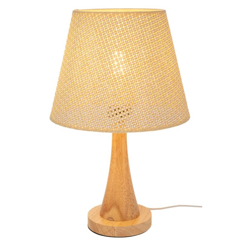 НАТУРАЛНА ДЪРВЕНА ЛАМПА С КРЕМОВА ШАПКА 38 СМ