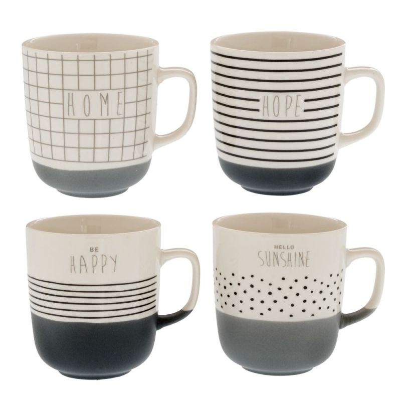 СИВО-БЯЛА КЕРАМИЧНА ЧАША С 4 ДИЗАЙНА 9X10 СМ