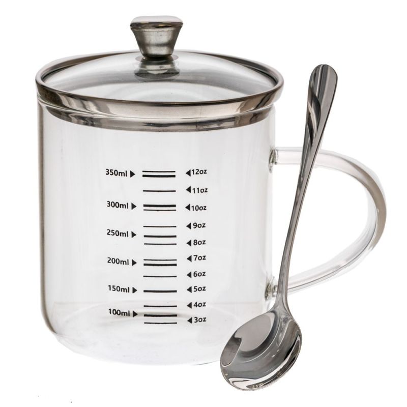 СТЪКЛЕНА ЧАША С ДОЗАТОР И МЕТАЛЕН СТЪКЛЕН КАПАК D8X10 СМ
