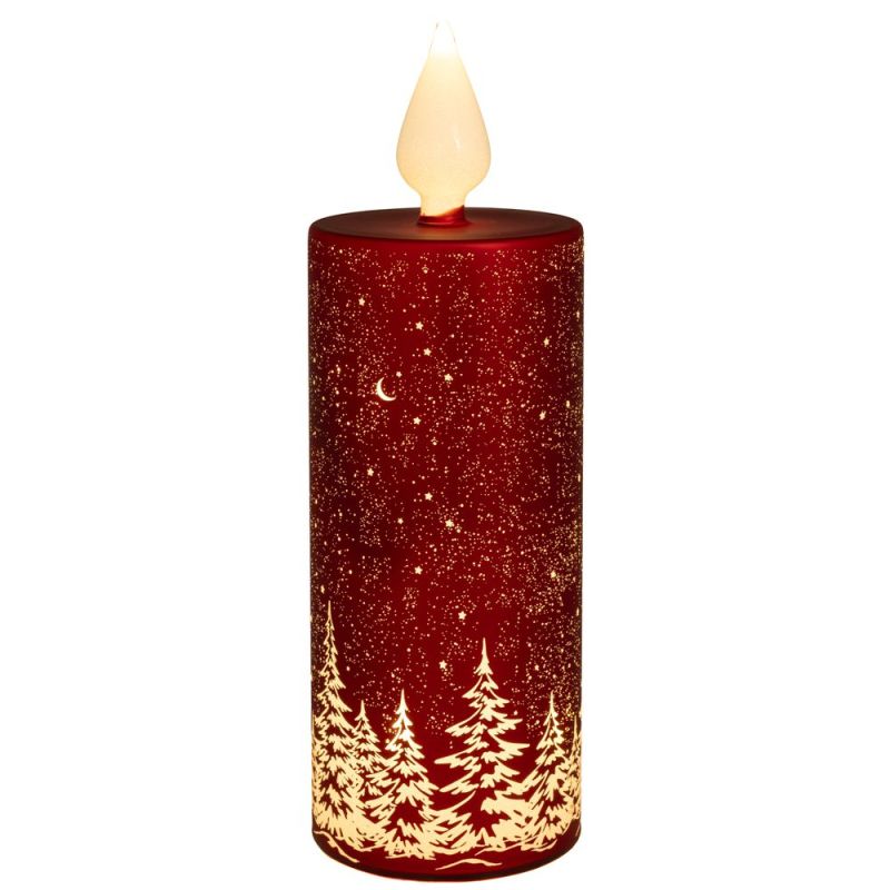 ЧЕРВЕНА LEDСТЪКЛЕНА СВЕЩ С БЯЛ ПЛАМЪК И БЯЛА СЦЕНА Φ9Χ27Φ