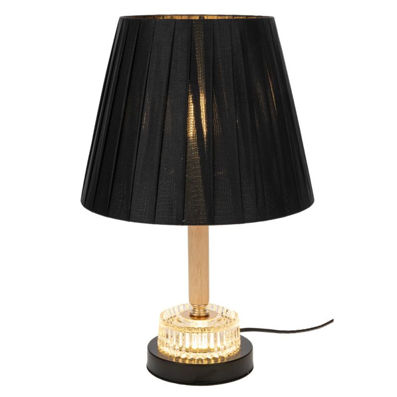 ЧЕРНА ДЪРВЕНА ЛАМПА С ЧЕРНА ШАПКА И СТЪКЛО В СРЕДАТА С ДОПЪЛНИТЕЛНО ОСВЕТЛЕНИЕ 38 СМ