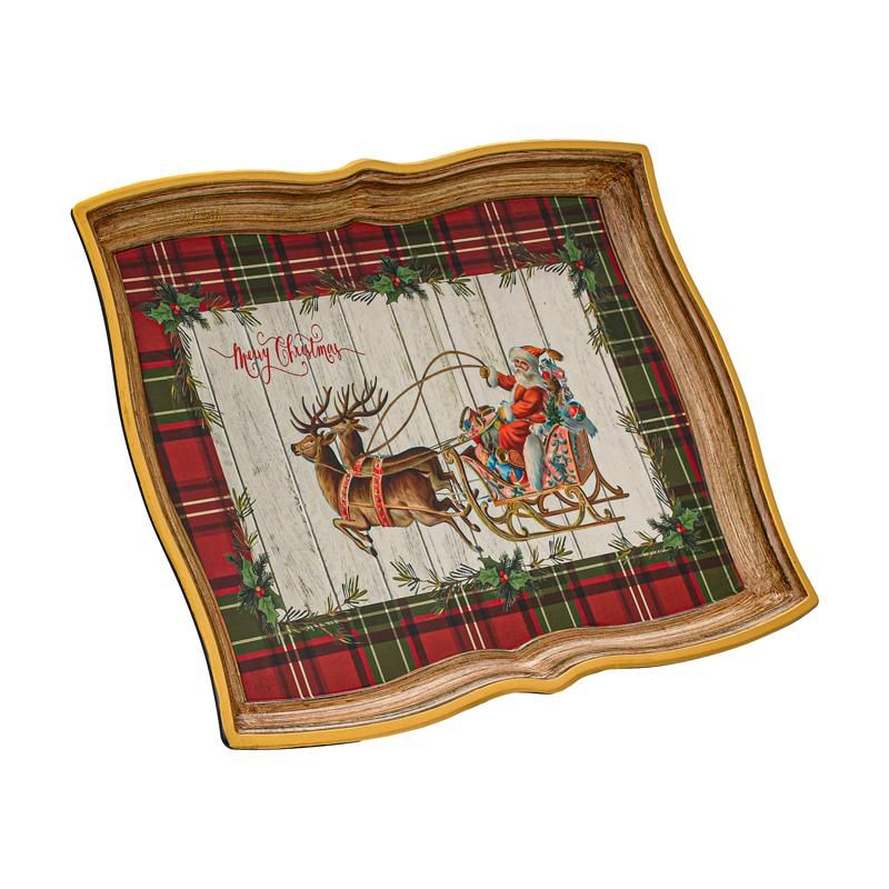 КОЛЕДЕН ПЛАСТМАСОВ ПОДНОС FL10141 ЧЕРВЕНО-БЯЛА 43X32X3СМ