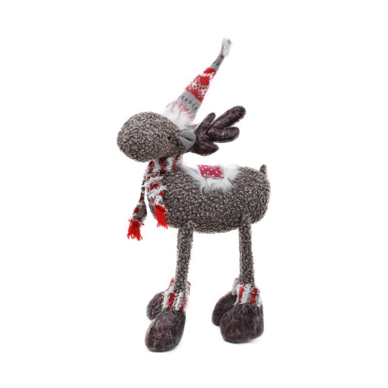 КОЛЕДНА ДЕКОРАТИВНА ФИГУРА СЕВЕРЕН ЕЛЕН ЧЕРВЕНО-СИВА 25X25X45СМ