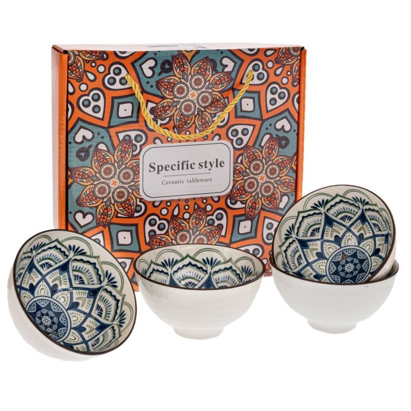КОМПЛЕКТ ОТ 4 СИНИ КЕРАМИЧНИ КУПИ С ГЕОМЕТРИЧНИ ДИЗАЙНИ 11X6 СМ