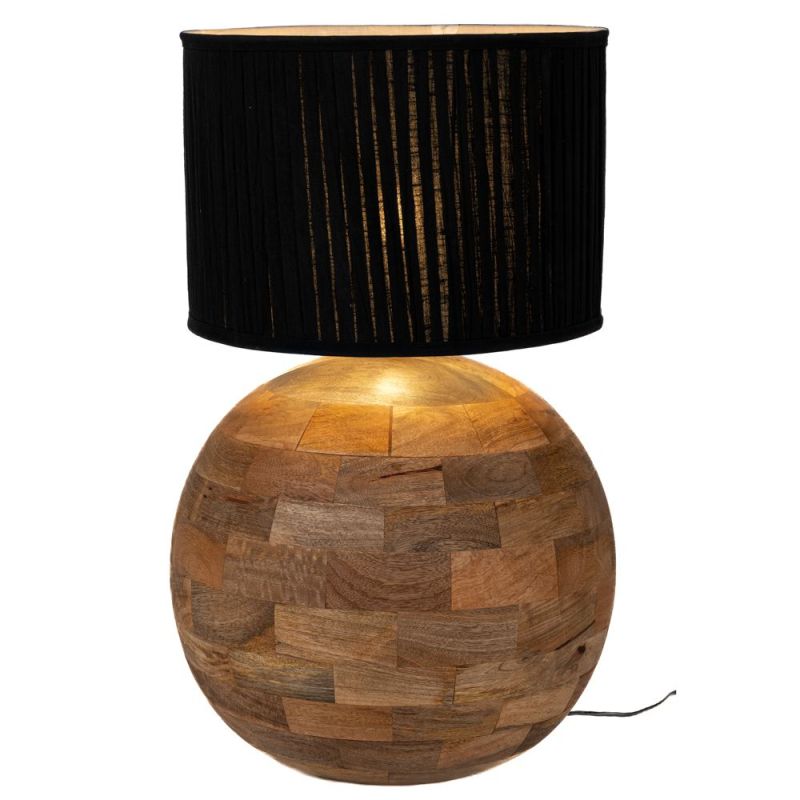 КРЪГЛА НАСТОЛНА ЛАМПА ОТ МАНГОВО ДЪРВО С ТЪМНОСИН АБАЖУР, 45X50 СМ