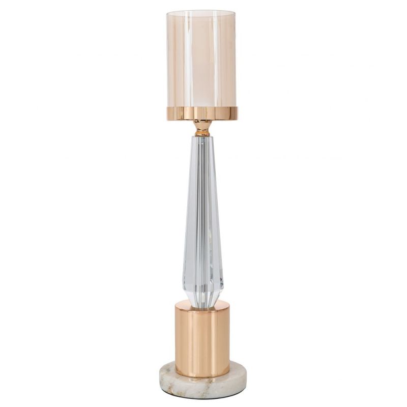 ЗЛАТИСТ МЕТАЛЕН СВЕЩНИК С АКРИЛНО ТЯЛО, СТЪКЛО И МРАМОРНА ОСНОВА, 13X57 СМ