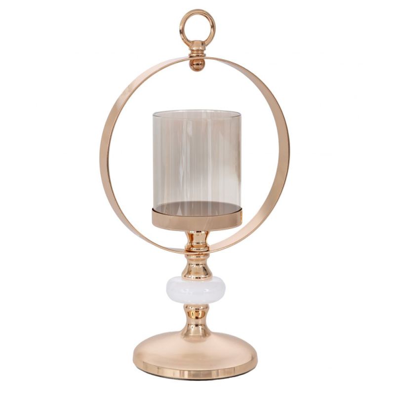 ЗЛАТИСТ МЕТАЛЕН СВЕЩНИК С ВЕНЕЦ И СТЪКЛО D12 18X34СМ