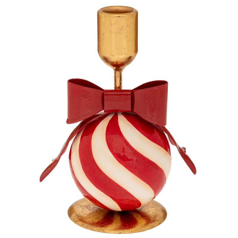 ЗЛАТИСТ МЕТАЛЕН СВЕЩНИК С ЧЕРВЕНА ПАНДЕЛКА 16.5X8.3X16.7СМ