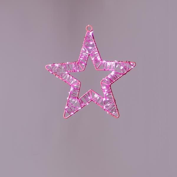 СВЕТЕЩА ЗВЕЗДА 23СМ, 80 МИНИ LED, 4,5V АДАПТЕР, РОЗОВА МЕТАЛНА РАМКА, РОЗОВ МЕДНА ЖИЦА, РОЗОВ МИНИ LED, ЖИЛ 5М, IP44
