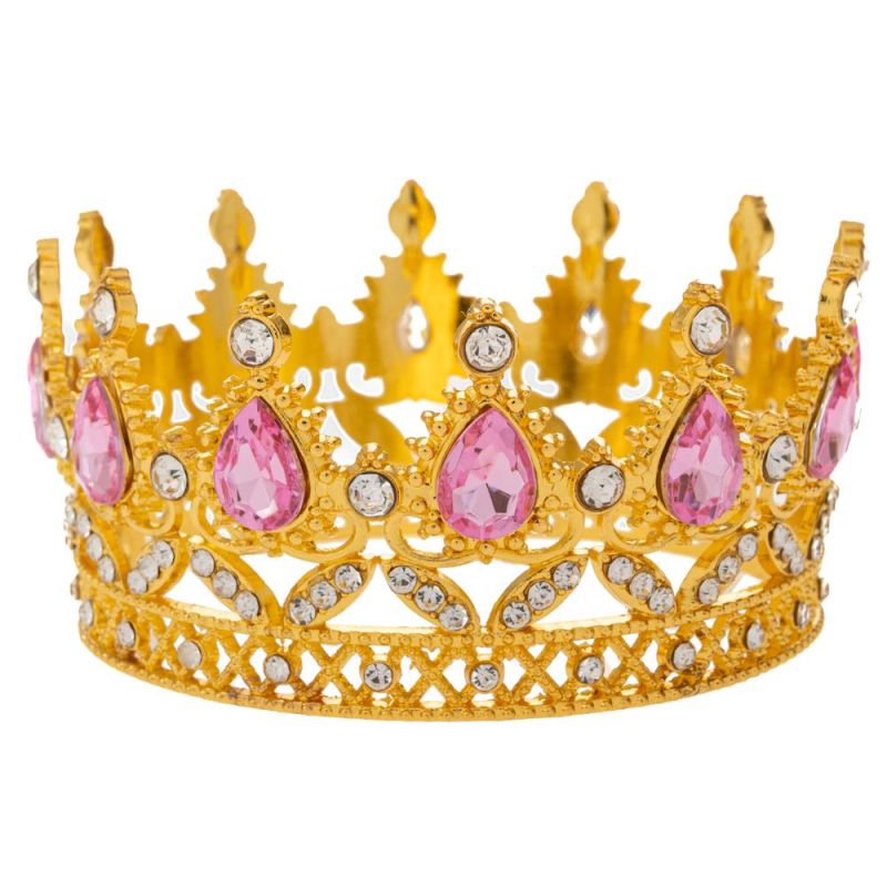 ЗЛАТНА МЕТАЛНА КОРОНА С РОЗОВИ СКЪПОЦЕННИ КАМЪНИ 9X4.5 СМ
