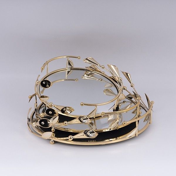 МЕТАЛНИ ПОДНОСА S/3 С ОГЛЕДАЛО ЗЛАТО 38СМ /33СМ /28СМ