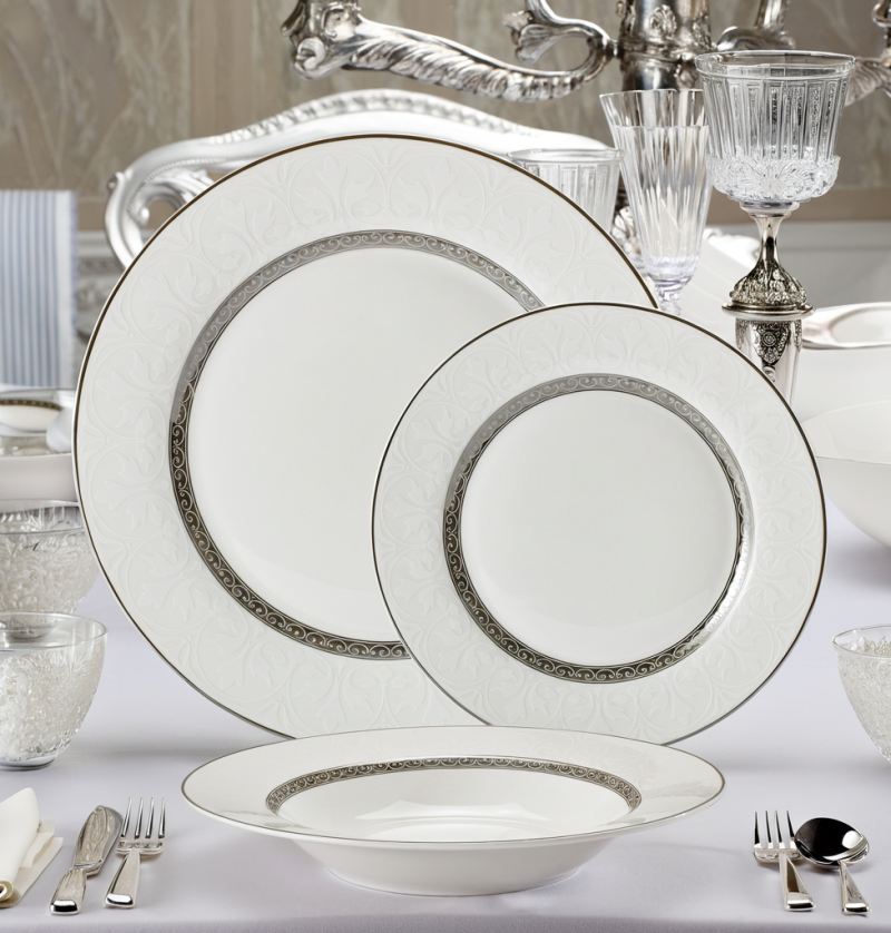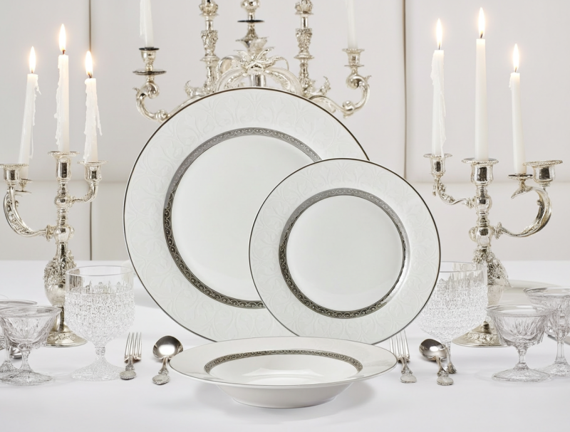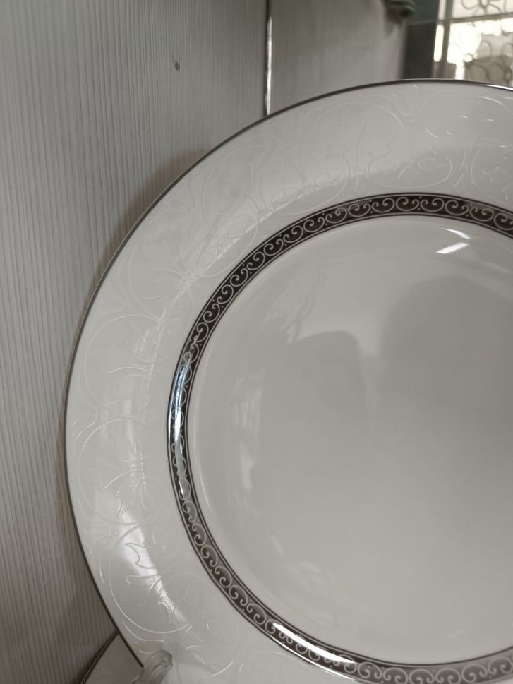 СЕРВИЗ ЗА ХРАНЕНЕ 18 ЧАСТИ ПОРЦЕЛАН СРЕБЪРЕН КАНТ