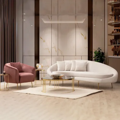 МАСА SUSSIE-ENSURE, 5 БР., МЕТАЛ-СТЪКЛО, ЦВЯТ ШАМПАНСКО, 140X80X70СМ