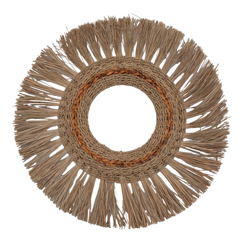 Размери на продукта: Дължина: 90 см Ширина: 90 см Височина: 6 см Информация за материала: Ракита: Тъкана структура, изработена от растителни стъбла или слама, изтъкана и закрепена по различни начини, за да образува издръжлива конструкция.