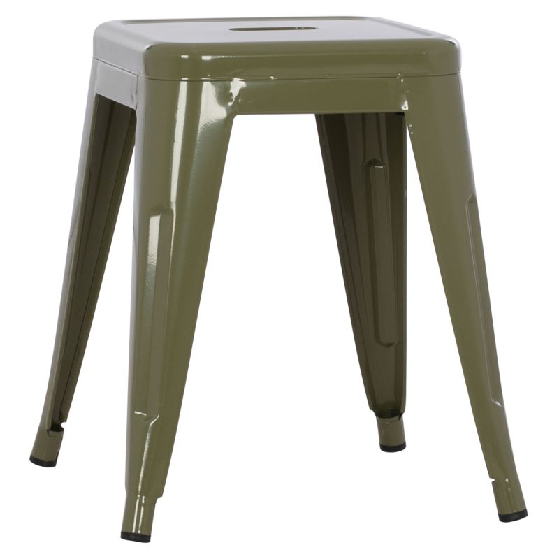МЕЛИТА Ниска табуретка изцяло метална в цвят ТЪМНО МАСЛИНОВО.