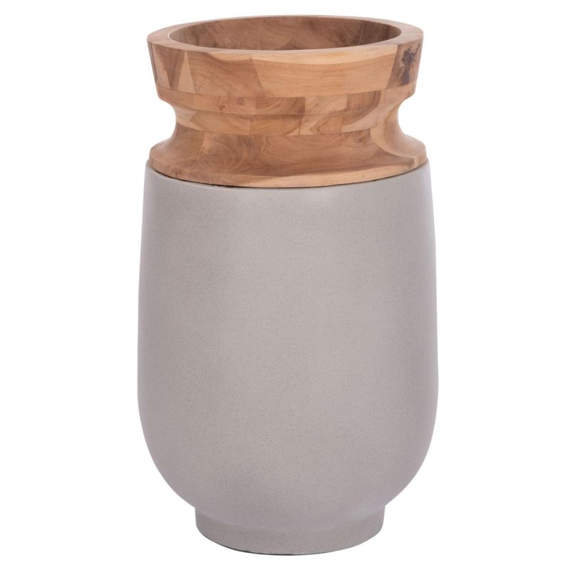 Изработен е изцяло от фиброцимент в СИВ цвят с гърло от качествено тиково дърво, а размерите му го правят внушителен в пространството. Идеален за множество приложения и пространства. РАЗМЕРИ: Φ34x60H ...