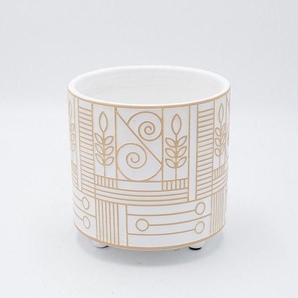 КЕРАМИЧНА САКСИЯ БЯЛО-БЕЖОВА 17x17x16.5см