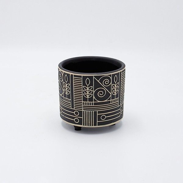 КЕРАМИЧНА САКСИЯ ЧЕРНО-БЕЖОВА 10.5x10.5x9.5см