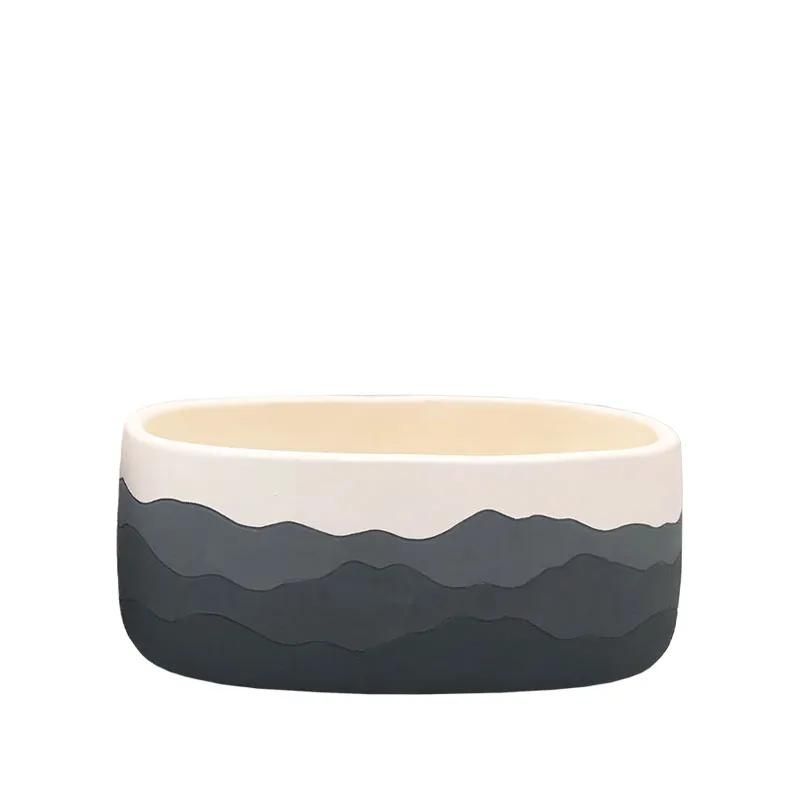 ОВАЛНА САКСИЯ СИВА ОМБРЕ С ПЛАНИНСКИ МОДЕЛ - 20X10.2X9СМ 8 БР./КУТИЯ