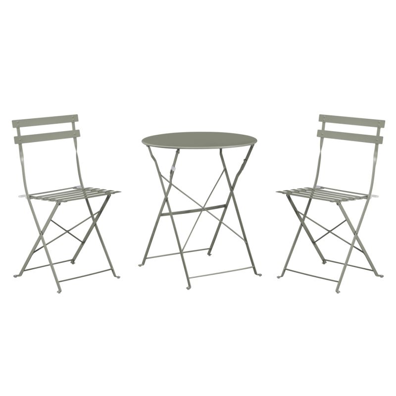 Диван СОФИ 3 части в цвят ТЪМНО МАСЛИНОВО се състои от 1 кръгла маса и 2 стола, изцяло метални и сгъваеми.