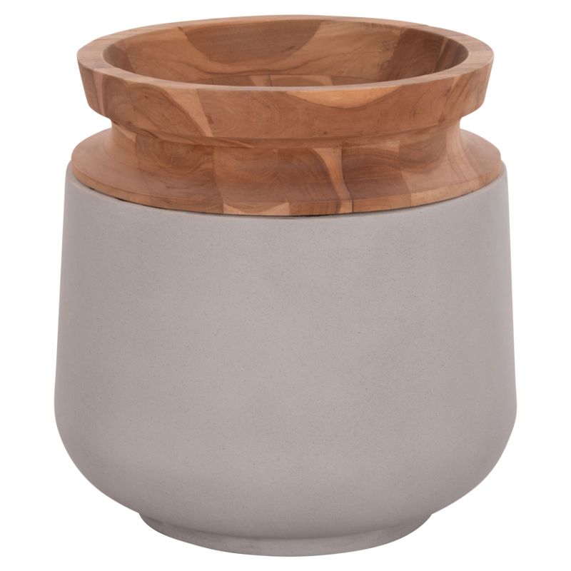 Изработен е изцяло от фиброцимент в СИВ цвят с гърло от качествено тиково дърво, а размерите му го правят внушителен в пространството. Идеален за множество приложения и пространства. РАЗМЕРИ: Φ41x47H ...
