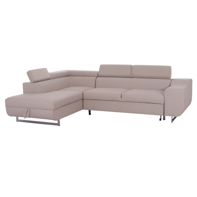 Подплатата му е от висококачествена БЕЖОВА дамаска, а краката са метални и високи. Характеристиките му обаче го отличават във всяко отношение! Страната, която оформя постоянния ЛЯВ ъгъл, има зона за съхранение, ...