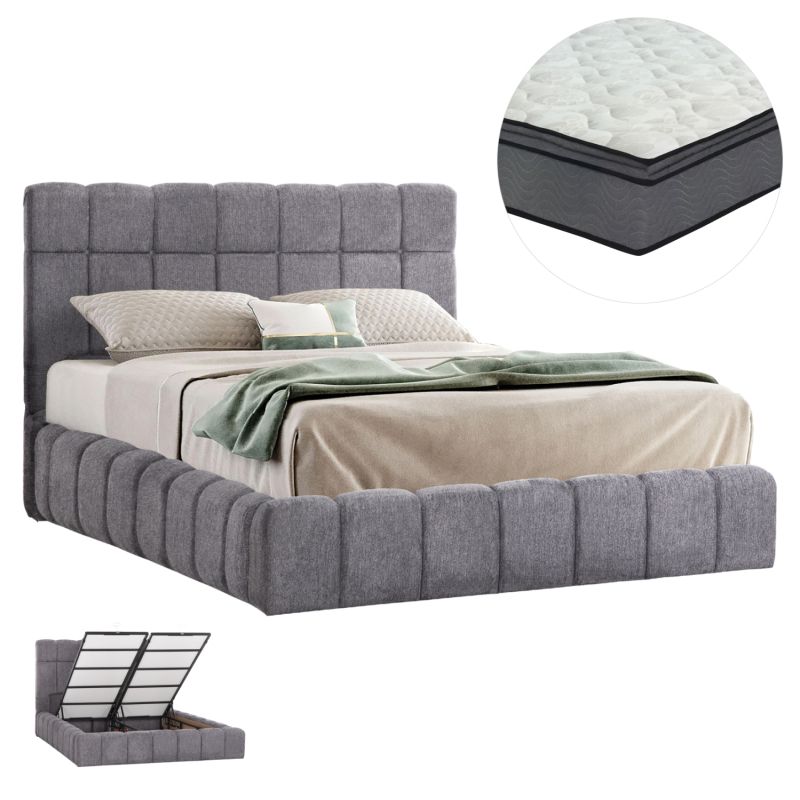ДВОЙНО ЛЕГЛО С МАТРАК И МЯСТО ЗА СЪХРАНЕНИЕ RAMON HM21168 СИВ ПЛАТ С БУКЛЕ - ЗА РАЗМЕРИ 160X200СМ.